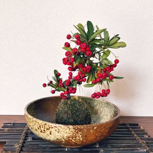 ピラカンサ お正月は苔玉で 苔玉も盆栽のひとつだとか 盆栽、気になるなぁー