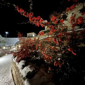 エジプトからトルコ、カッパドキアへ✈️🚌 砂漠から雪の街へやってきました❄️ 洞窟ホテルのピラカンサの実 街の風景と世界遺産カッパドキアの奇岩
