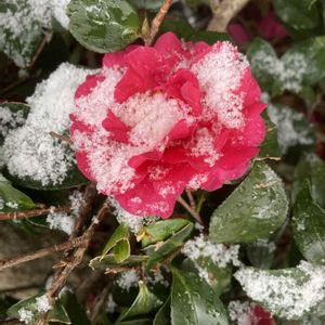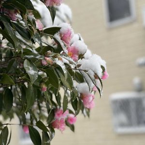 🌿🩷寒椿🩷🌿 12年ぶりかなぁ🤔💭 積雪がありました❄️🩷❄️