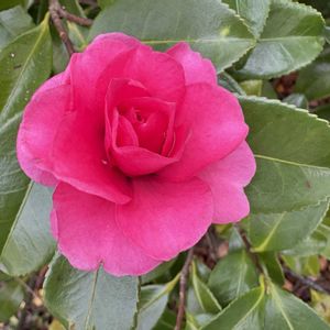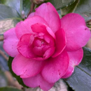 カンツバキ(寒椿) 冬に咲くツバキ科の常緑低木 ツバキとサザンカの交配種と言われるが異論もあるそうです🤔 八重咲きで花びらは一枚ずつ散り これが花が丸ごと落ちるツバキとは異なる点です 別名「獅子頭(ししがしら)」 個人的には寒椿の方が絶対良いと思います🤭