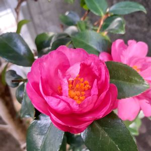 マンション玄関の寒椿🌺 通る住民を癒してくれて います💕