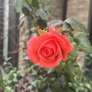 おはようございます。😊 朝から雨が降っていました。そんな中、オレンジのバラが雨に濡れ、咲いています。🌹いつまでもこうして咲いてくれるので、木立のバラはなかなか剪定ができません。 つるバラの方は、とっくに剪定誘引が終わりました。最後の画像は今春に咲いた時のものです。