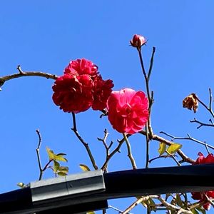 今日のお花 薔薇 南側2階ベランダへ 這い上がるつる薔薇 ラブ・ストラック 去年狂い咲きして 22年の 薔薇の人生を終えました➰🥹 長い間 美しい🌹✨🌹✨🌹✨🌹✨🌹✨を ありがとう💖 寿命としては 短すぎたと思います 後を次ぐ 紅いつるバラを探してますが なかなか この🌹を超えそうなものが 見つかりません➰🤔