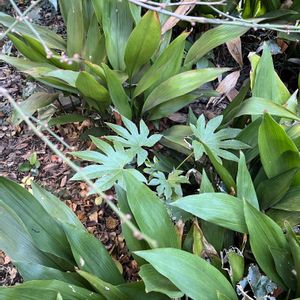 今日のお庭 タラヨウ (ハガキの木) サカキ ヤツデ 今日は1日雪❄でした🥶 先日剪定してもらいました(◍•ᴗ•◍)✧*。