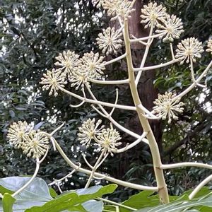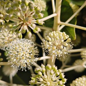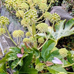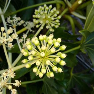 ヤツデ ツブツブのツボミ、1つ1つ小さな花が咲きます。球状に集まって可愛いです。