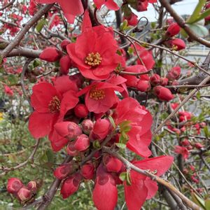 我が家のボケがやっと見ごろになってきました。 今年はボケだけでなく、近隣に植っている遅咲きの梅も少し遅い気がします。さくらが咲くかも?という話が聞こえてくる頃になりましたが、綺麗によく咲いています。 3枚目以降はアネモネ、フクジュソウ、シラーです。 同じ仲間だからか、アネモネの茎が短いまま咲くと、アネモネとフクジュソウは雰囲気がそっくりです。 シラーは今年、初めて見かけたので購入。気づいたらしらーん間に青い花が咲いていました。いつ咲いたんだろう…