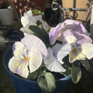 パンジージョリーアンジュがふわふわと咲いてます💜🤍🩵 足元にはシラーの芽が出て来ました🌱 パンジーに埋もれそうだけど、頑張って出て来てね☺️♡ この大寒波で東京もかなり寒いですけど、雪の多い地域のご苦労は想像以上ですね😣 皆さま、どうぞお気をつけて…。
