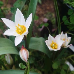 先日のクリサンサに続いて原種系チューリップ咲き始めてます。 テタテタは開花直前。明日には? あと地植えのシラーシベリカも。