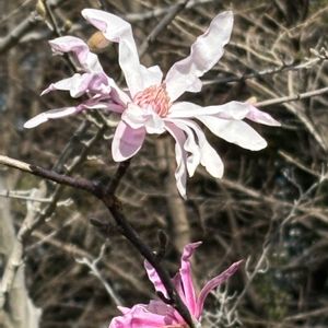 この日は、モクレンとコブシに加えて、他のモクレン属が二種類咲いてました ①やっとこさ開花してるのを見れたシデコブシ。花はコブシの半分ぐらいの小さめの花でした。このヒラヒラした花弁を見たかったのです💓分布は愛知、三重、岐阜県3県のみで、自生ものは超貴重 ②オガタマノキ(招霊の木)初めましてです。神木だそうで神社に植栽されてる事が多いそうです。モクレン属では唯一の常緑樹だそうで、ぱっと見はクスノキに似てます。花径3cmほどと小さく、花は葉っぱに埋もれて見え難かったです。分布は関東以西 3/20東御苑