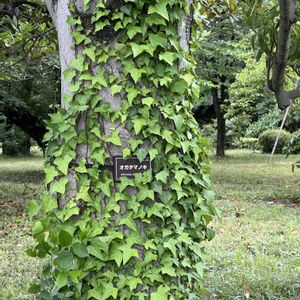 昨年6月撮影 オガタマノキに絡まるセイヨウキヅタ そういえば『べらぼう』の次週予告に一瞬「からまる」という文字が映っていましたね。明日の放送が気になります