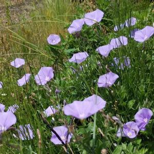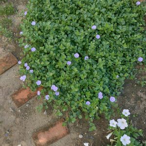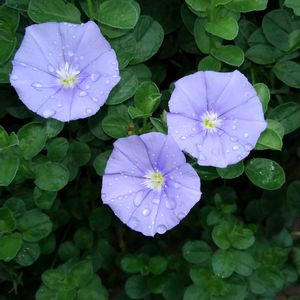 お出かけ先で❗ 雨上がりの花壇 たった一輪、薄紫の花が咲いていました💜💜💜 アサガオかと思ったらコンボルブルスみたいです😅