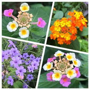 こんばんは 可愛いランタナ💛💗💚💛🧡 ↙️柳葉ルイラ草💜