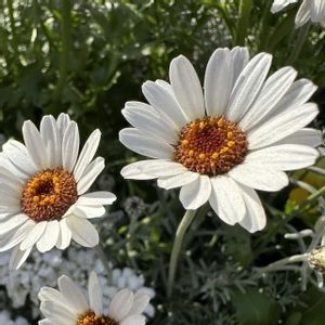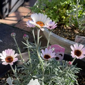 ローダンセマム(学名: Rhodanthemum 英名: Moroccan daisy 和名: 朝霧小菊)の花🌸🌿🌺 ローダンセマムは、美しい葉から茎を伸ばした先に可愛い花を咲かせます。花姿や草姿は、マーガレットに似ていますが、マーガレットと比べるとローダンセマムの方が寒さに強い特長があります。ローダンセマムの花は、中央の筒状花が茶褐色で、ピンクから白の舌状花を咲かせる可愛らしい花です。 可愛らしい花をお楽しみください。 🌸🌿🌺