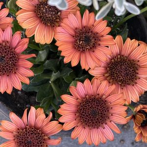 ①オステオスペルマム🟠 狭庭 ②野牡丹コートダジュールあけぼの🟣 ③ネメシア🟥 ④⑤ローダンセマム ピンクと白 オステオスペルマムは、画像より茶色掛かって暗めの色味🤎 こんな色も嫌いじゃないんだな私❣️‥って事で衝動買い。 野牡丹アケボノはお値打ち品コーナーで一目惚れ🤩 花屋さんへ遠出🚙‥せっかく出かければ色々買いたくなっちゃうよね〜😚 ネメシア‥🔴やっと咲いてきた、小花はかわいい😘 🤍💓ローダンセマムさんは昨春より大きく育って、蕾がたくさん待機してる♡♡(^^)♪♪