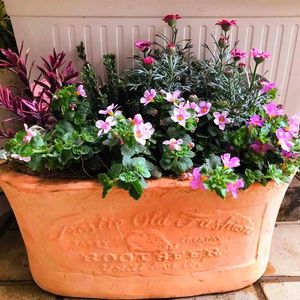 ピンク系の寄植え🩷 ピンク色が好きな友人の新築祝い用に制作した寄植えです🌿 お洒落なテラコッタの鉢に植えました。 我が家はプラ鉢ばかりですが、テラコッタの鉢は、お洒落感UPします🪴
