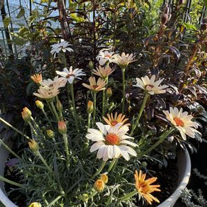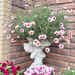 ローダンセマム✨ ①ムーン 今年の2月に新しく寄せ植えし、金魚草はまだ蕾だけ ②アプリコットジャム 咲き始めました ③クレールアルバ 蕾の先がピンクになりもう少しで咲きそう