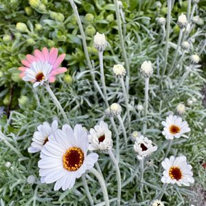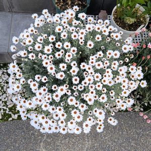 咲き出しました♪シルバーリーフがお気に入りのローダンセマム 冬も緑の葉のまま 寒さに強い☃️