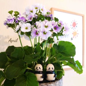 4月がスタート☘️ 今日はあいにく1日中雨でした☔ 早く庭に出たくてウズウズしてるパンダ親子です。 室内で育ててるオブコニカ。日当たりが悪いのに絶え間なく咲いてくれて癒されます❁