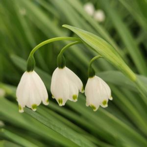 🏷️今日のお花 スノーフレーク 鈴蘭水仙🌼*・ 実家に咲くスノーフレークと、八重咲き日本水仙🌼*・(過去Pic) ギボウシも葉っぱが出始めました(*^^*)🌿