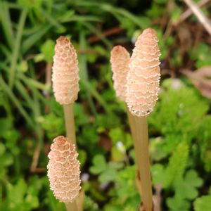 ツクシ 何日か前からニョキニョキと目立ってきた♪トクサ属の立派なシダ植物で、胞子茎のツクシが胞子を飛ばして枯れ始めると、今度は栄養茎のスギナが現れ、あたり一面が駆除出来ない程広がる🟢 誰か作ってくれるなら、卵とじも美味しいけれどf(^^;