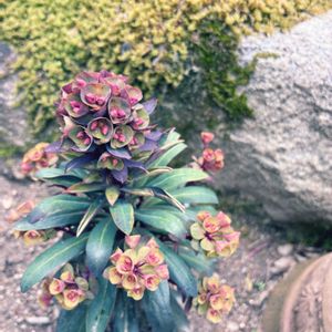 ユーフォルビア ブラックバード 何も下調べせずにフィーリングだけでお迎えしたもので こんなふうに咲くとは予想してなくて これが花だと気づいたのは2日ほど前です もしかしたら地植えも厳しかったのかもだけど 見事に越冬してくれて こんな超個性的でお洒落な花を咲かせてくれた