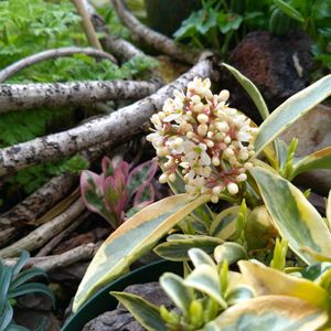 5.0℃🌅/13℃☀🌪️ 鉢ごと花壇inのスキミアが咲いてきました🤍 アネモネ フローレプレノは、もういつ咲いても🌹 最高にキラキラな見逃せない瞬間です🥰 アクセサリーのような ユーフォルビア ブラックバード🐦⬛🪷✨