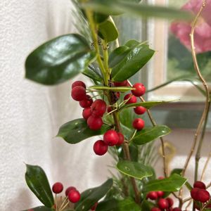 クリスマスホーリー 西洋ひいらぎ ずっと可愛い実が付いています🍒 2枚目はケーキ屋さんのお花 いつも素敵なお花です