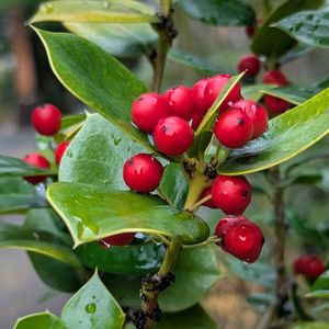 ⿻*.·┈⿻*.· ┈⿻*.·┈⿻*.· 💚🔴💚🔴💚🔴💚 クリスマスホーリー 西洋ヒイラギ お花❅.*と実が‥‥ フシギッダネ♪