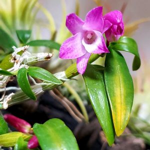 昨日 蕾が開きかけていた セッコク 京紅 今日 会社から帰宅すると 咲いていました⸜(*ˊᗜˋ*)⸝ この 濃い紅色のお花が 大好きです♪ が…お花と蕾が近すぎて 花びらが 隣の蕾にパンチしています💦 ( ‘д‘⊂彡☆))Д´) パーン