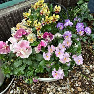 1枚目:暖かくなってきたので、玄関先のパンジーがモリモリになりとても綺麗に咲いています。 2枚目:エビネの新芽がニョキニョキ出てきました😊期待しちゃういい新芽のお姿〜。どうなるかしら❓ちょっと楽しみꉂ🤭 3枚目:作落ちしてスレンダーなバルブになった長生蘭を仕立て直しました。今年の抱負はダイナマイトボディを目指します💣💥💥