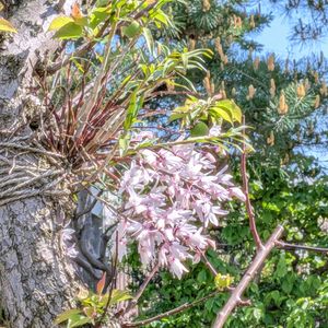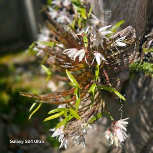 雨上がり、シランに今年もお花が咲きました🤍 斑入りの葉が綺麗! 松の木に着床した実家のセッコクは 家主が居なくなっても咲いていました!