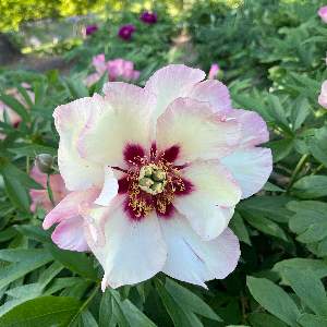 3年目のベルオブウォーキングが開きはじめました🙌 ③ジャーマンアイリスの蕾💜 ④➄ルィーズオディエ ➄ノイバラ