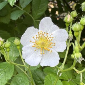 「芝生広場で見つけた」 撮影📱2026.4.19 おはようございます😀 熊本市・上江津湖の 芝生広場で見つけ撮影📱 ノイバラ🌼 広場一番奥で咲く白色の 花が綺麗やったよ😀 太陽の光を受けて花🌼が 輝いて素敵やったよ🎵