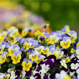 ① パンジー スミレ科 スミレ属 原産地:ヨーロッパ ・小型の園芸植物の一種 ・多年草(1年草) ・草丈:15-25cm ・花期:10-5月 ・花径:(4)5-10cm、ほぼ円形の花弁が5個、平らに開く ・花色:青色、紫色、赤色、ローズ色、黄色、アプリコット色、赤褐色、白色、2色など、豊富 別名:サンシキスミレ(三色菫)、遊蝶花(ユウチョウカ)、人面草(ジンメンソウ)、コチョウソウ(胡蝶草) 花言葉:「もの思い」「私を思って」「思い出」「思慮深い」 色別の花言葉: 紫:「思慮深い」「誠実」「揺るがない魂」 青:「純愛」「誠実な愛」 黄:「つつましい幸せ」「田舎の喜び」 白:「温順」「愛の思い」「心の平和」 オレンジ:「天真爛漫」 ※ 由来:フランス語の「pensee(考える)」が名前の由来。 ※ 日本ではパンジーの花の直径が4(5)㎝以下の小型矮性種をビオラと呼んでいる。 ※ 起源: 19世紀初頭のイギリスで、園芸家トンプソンらが野生種(Viola tricolorなど)を掛け合わせて作ったのが始まりとされている。 ※ 日本への渡来: 江戸時代末期の1864年頃に入ってきた。 ② クレマチス ③ ノイバラ/野茨 ④ ハハコグサ/母子草 ⑤ コケ/苔