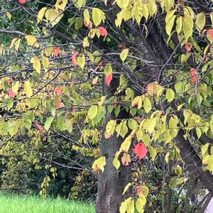色づいていく果実と美しい桜葉を眺めて ゆっくり歩いていると カンザンでしょうか 最後のお花を観ることができました😊 ① 🍒キクシダレザクラ(菊枝垂桜) ② 🍒カンヒザクラ(寒緋桜) ③ 🌸カンザン(関山) ④ 🌿ヤマザクラ(山桜)