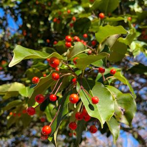 こんばんは😊 今日は、暖かかったですねー🥰 さて、ソヨゴとシャリンバイのコントラストが映えていたので、アップします🥰