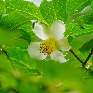 ナツツバキは、昔から「シャラノキ」として寺院の庭に植えられてきました。黄緑色でしわのある葉と灰褐色の