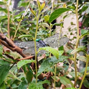 オニヤンマ 雨に濡れたオニヤンマくん 熊蜂に巣を造られそうになったので、予防設置。 効果有り?か、今の所、熊蜂はやってこない😅