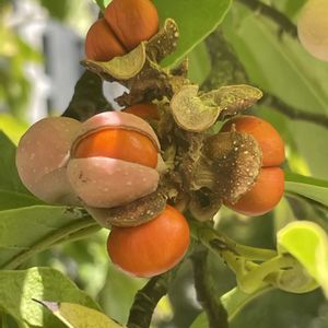 赤くてつぶつぶのもの二種類 1️⃣2️⃣はコブシ こんなに実ができているの見るの初めて👀 3️⃣名前はコリトプレクツススペキオスス 絶対覚えられない❗️ 観葉植物で見たことあるような葉っぱだけど黒真珠のような実をつけている 京都府立植物園の温室で見ました❣️