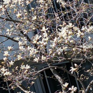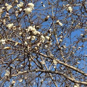 コブシ ベランダからお隣りのコブシが見えます! 今年もよく咲きました🤗👍️ とってもいい天気☀ 目はショボショボ 鼻の奥がツーン🤧😷😵 2026.3.15