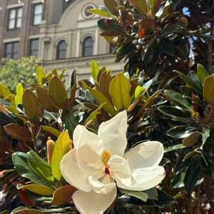 多分タイサンボクだと思います。 花期は日本だと夏前に見ると思うので初秋のオーストラリアはこの時期でも咲いているのだと新たな発見でした。 土地も広いのでこの木は町中でも住宅地の街路樹の一部としてもわりとよく見かけました。