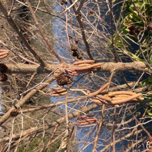 ハンノキも青空にキラキラして素敵でした✨🥹🎶 ハンノキ カバノキ科 ハンノキ属 落葉高木 雌雄同株 水辺を好み、低地の湿地や水田のあぜなどに見られ、 花は11月~4月に咲く。 尾状に垂れ下がったのは雄花。 果実は長さ2センチほどで数個付き、10月頃に熟す。 葉は有柄で互生し、長さ5 - 13 cmの長楕円形から長楕円状卵形。 葉縁には浅い細鋸歯があり、側脈は7 - 9対。 葉の寿命は短く、緑のまま次々と落葉する。 今日も🏷️樹木見上げ隊 に参加させていただきます🎶 「木曜日じゃなくても木」 ハンノキ