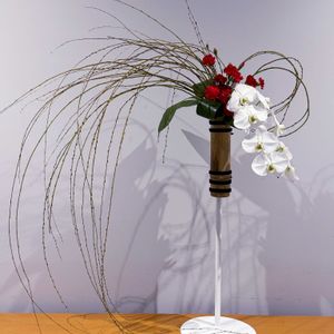 毎年この時期にいける枝垂れ柳。 今回はあまり長くなかったので、思い切ってそのまま垂らそうと思い、スタンドを用いて高い位置からいけてみました。 ちょっと胡蝶蘭が大きかったかな〜?
