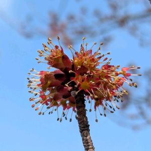 ①ハナノキ(花の木) ムクロジ科カエデ属の落葉高木日本固有種 カエデの仲間で、別名ハナカエデともいう 和名の由来は、早春の冬枯れの中、葉が展開する前に深紅の目立つ花が咲く様子から、「花をつける木」を意味する 天気が良いのでコブシと彼岸桜をもう一度見に行く②③④ やっぱり青空のもとでは花がより美しい🌸🤍💗 桜を堪能して歩を進めると斜向かいの木になにやら真っ赤な物体がついている 確か紅葉が綺麗な木🍁 グーグルレンズで調べると「ハナノキ(ハナカエデ)」と回答 これは雌花のようだ 桜に心奪われ今まで気づかなかった〜😅