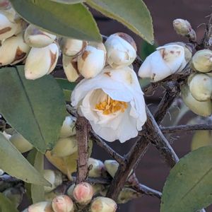 姫サザンカの花も 開花始まりました🌸◦° サザンカに比べて姫と名前に 付くだけあって小さいです。 沢山の蕾が付いてます(🎀•͈ᴗ•͈)ꕤ