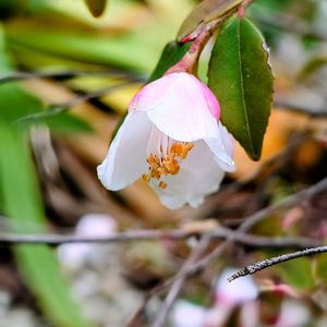カメリア・エリナカスケード ツバキ科ツバキ属 ①②③④⑤ 4/5 BASEGATE横浜関内にて撮影 可愛いお花だけど、何の花? 初めて見たお花です GSを閲覧していたら、同じ花、見つけたので名前がわかりました 調べてビックリだったのは、ツバキ科だった事 別名は、ヒメサザンカ 調べたら 枝が細く湾曲し、先端が下垂する枝垂れ性のツバキで、直径1㎝ほどの薄桃色の小花を鈴なりに咲かせます。…と記載
