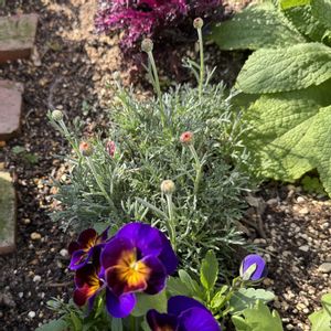 おはようございます 地植えと鉢植えのローダンセマムが 可愛いツボミをつけました♥️ 種からビオラも大きく成長 あと1ヶ月もしたら お庭は華やかでしょうね✨️