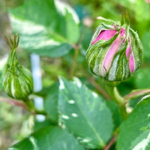 おはようございます☁️☀️ 今朝のお花は 🏷金曜日の蕾たち 1,2 バラがまもなく開花です🌹 斑入りの葉っぱが爽やかな ヘルシューレン🩷 毎年1番で咲く黄色いつるバラ💛 3 ジギタリス🤍 4 アリウム 初めて植えてみました😊 大きな蕾👀 5 ツキヌキニンドウ 今年は低い位置に咲きそうです🎶