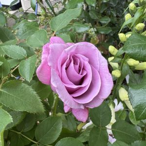 おはようございます☀️ シャルル・ド・ゴールが咲きました💜やさしいパープルcolor 大好きなバラに癒されます そしてバラのツボミがバラキクバチに襲われてます 😨😱😩🥲消毒してもダメなのかしら
