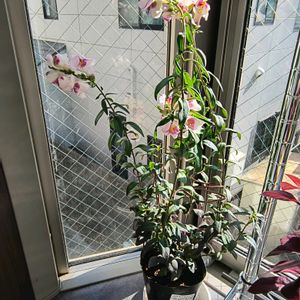 先日出窓で開花してくれたキンギョソウ ブロンズドラゴン。 長く伸びる品種なのしらなかった💦 花が重くて垂れていたので自作の支柱を作ってみたした。ステムが茶色いので茶色の針金で作成したら目立たなくて良き♥ 3枚目はうちの20歳のベイブ🐱